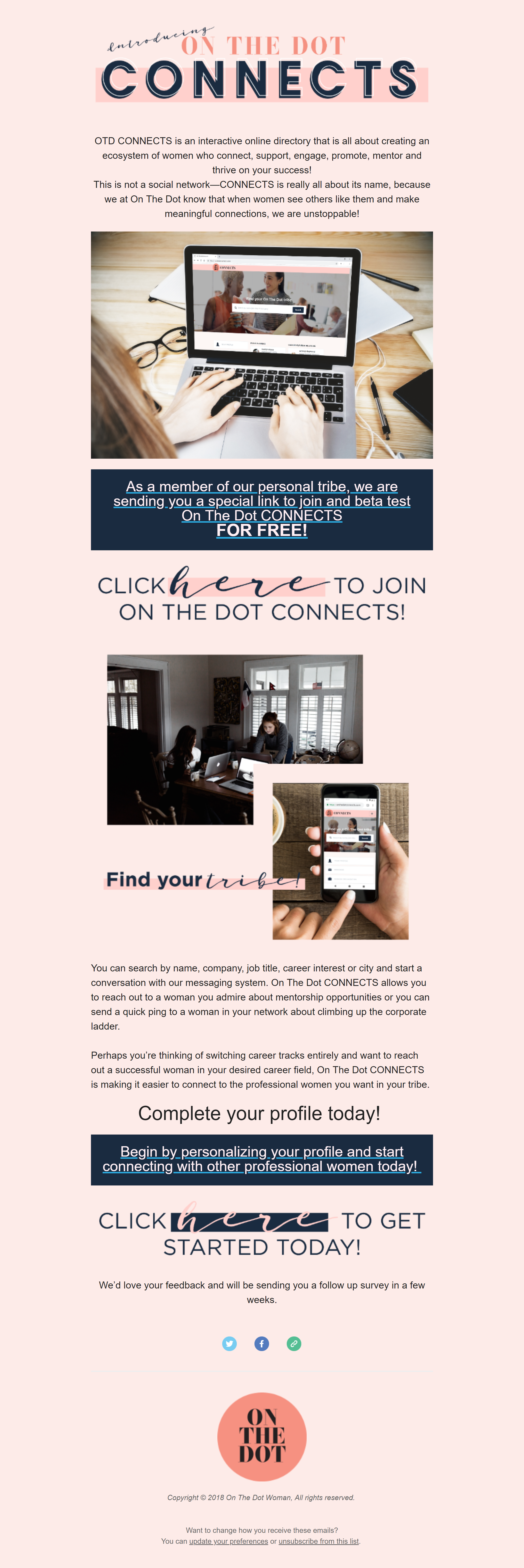 In accompaniment to the On The Dot website, the lifestyle brand is creating a space where career-driven women can connect with each other. As this feature is still in it’s development stage, we invited SITBI Success Summit attendees to beta test the directory in this campaign.